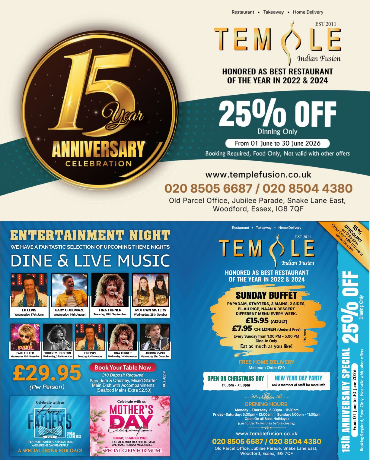 We are proud to present the finest chef in the culinary world. The management takes great care to ensure that our diners are happy with the food. We pride ourselves on our customer service and quality of food. TEMPLE FUSION uses only the very best ingredients to prepare your meal. In addition to the all time favourite dishes, we also offer our own specialities creating unique meals for you to enjoy. TEMPLE FUSION is an Authentic Cuisine in WOODFORD GREEN, tempted by an unrivaled range of Authentic & Imaginative traditional and fusion dishes. Our approach to healthy cooking is that we try to minimize additives in our dishes. So enjoy your meal & have a memorable experience!!